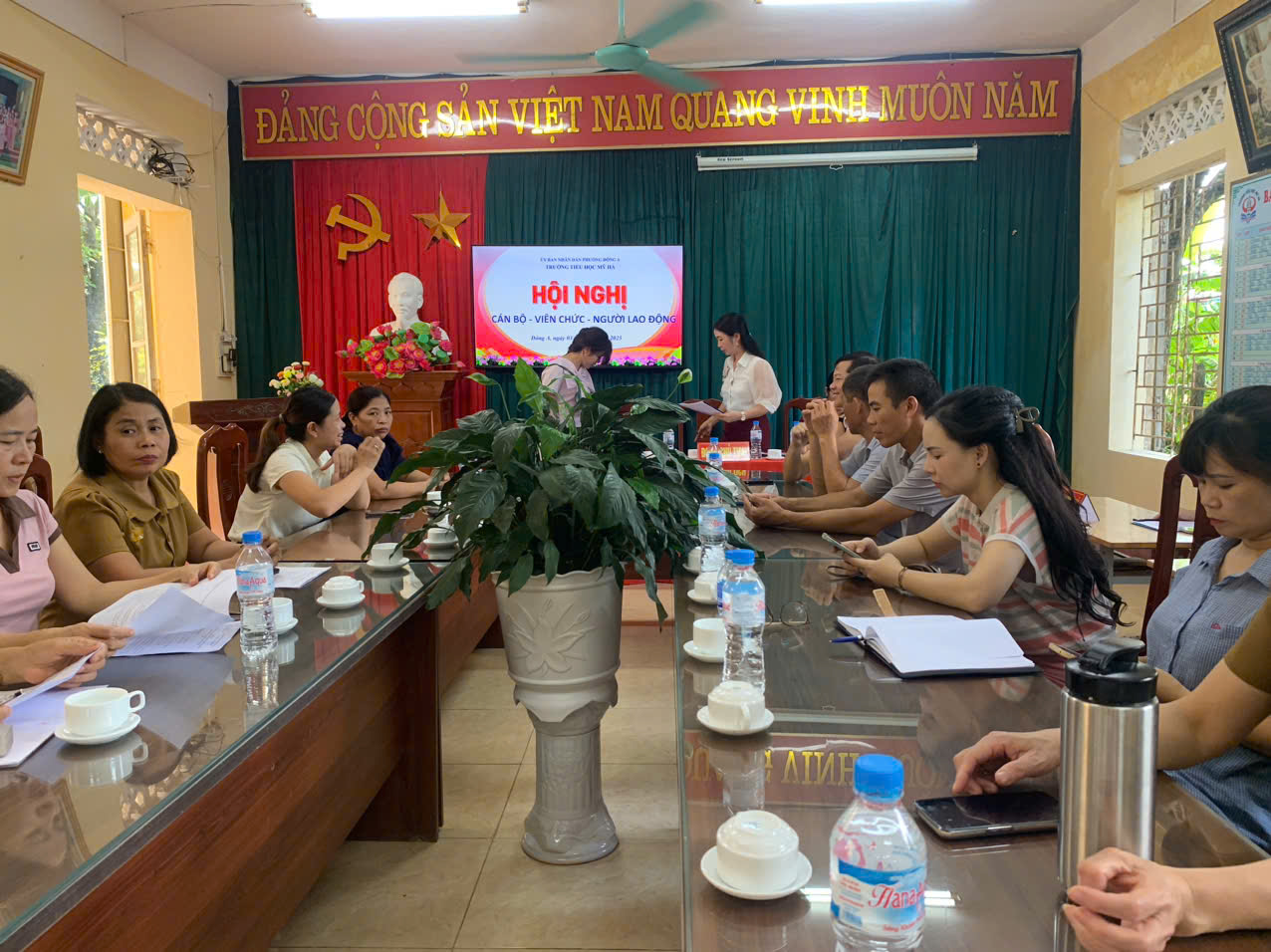 Ngày 03 tháng 10 năm 2025, Trường Tiểu học Mỹ Hà đã long trọng tổ chức Hội nghị Cán bộ – Viên chức – Người lao động năm học 2025 – 2026. Đây là một trong những hoạt động quan trọng đầu năm học, thể hiện tinh thần dân chủ, đoàn kết và trách nhiệm của tập thể sư phạm nhà trường trong việc thực hiện các nhiệm vụ giáo dục.