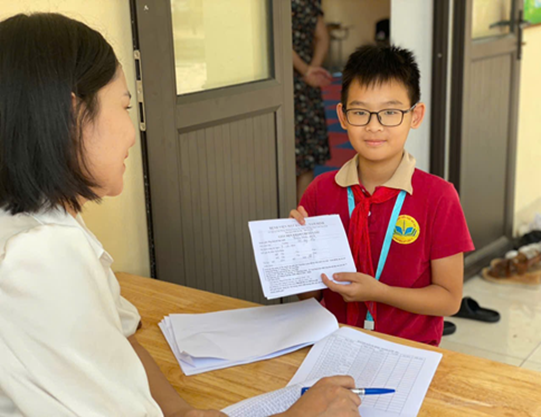 Tại buổi khám, các em học sinh đã được các y, bác sĩ Bệnh viện Mắt Hà Nội – Nam Định và các kỹ thuật viên khám sàng lọc tật khúc xạ học đường, tư vấn điều trị các bệnh về mắt như cận thị, loạn thị, viễn thị…, cùng cách thức chăm sóc bảo vệ để có một đôi mắt sáng, khoẻ. Kết quả khám sàng lọc có 154/685 em được phát hiện mắc bệnh về mắt. Kết quả khám sẽ được giáo viên thông tin đến phụ huynh học sinh. Những trường hợp mắc các bệnh về Mắt sẽ được bác sỹ tư vấn, hướng dẫn đến các bệnh viện chuyên khoa Mắt để thăm khám và điều trị kịp thời.