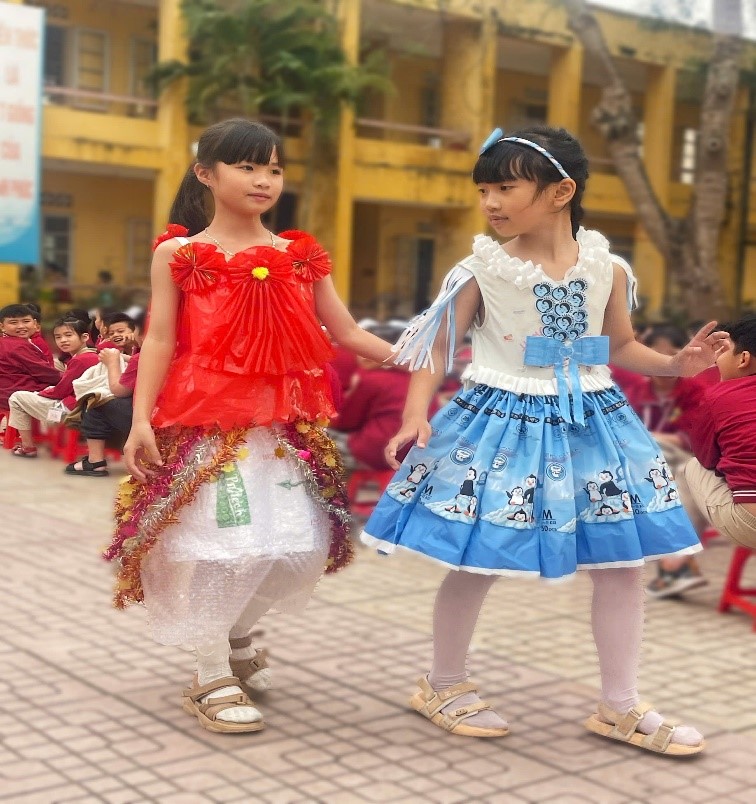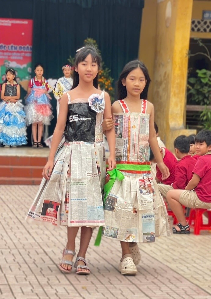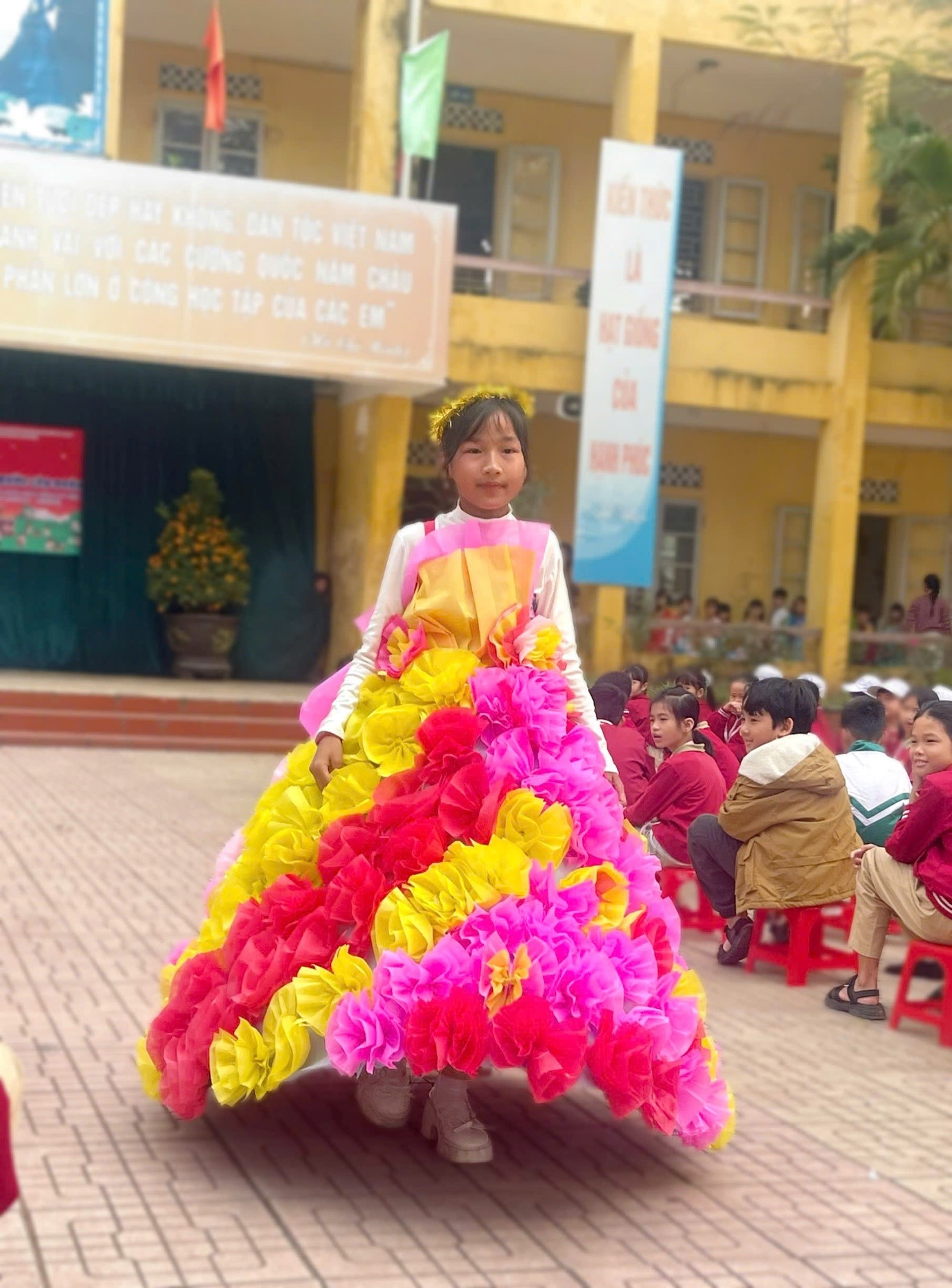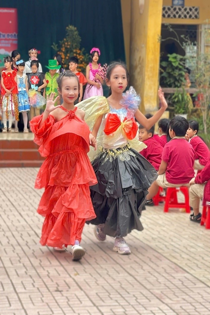 Không khí ngày hội thêm rộn ràng với hoạt động “Ngày hội STEM”, các bạn học sinh các khối lớp trình diễn thời trang tái chế, những “nhà thiết kế nhí” đến từ các lớp đã biến những vật liệu tưởng chừng bỏ đi ấy thành những bộ trang phục vô cùng lộng lẫy và độc đáo. Các bạn mang đến chương trình thông điệp mỗi bạn học sinh sẽ là một “đại sứ xanh”, biết phân loại rác và hạn chế sử dụng đồ nhựa một lần. “Hành động nhỏ, ý nghĩa lớn. Hãy cùng nhau giữ cho trường học và thế giới luôn xanh – sạch – đẹp!” Hoạt động mang đến nhiều niềm vui và sự hào hứng cho toàn thể thầy cô và học sinh.
